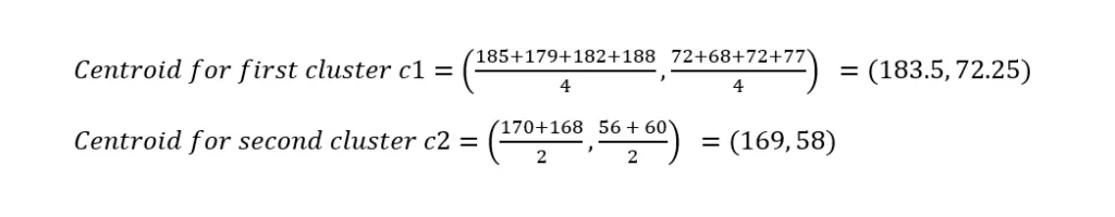 In the second iteration, calculating centroids again,